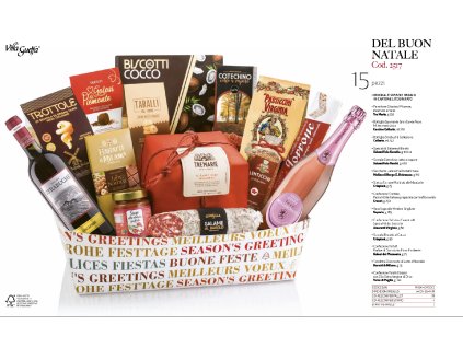 Název předchází náplň... S tímto naplněným košem to jistě budou Buon Natale! Dárkový koš s 15. kusy skvělých italských produktů vaše Vánoce rozveselí! Obsah balení v podrobném...